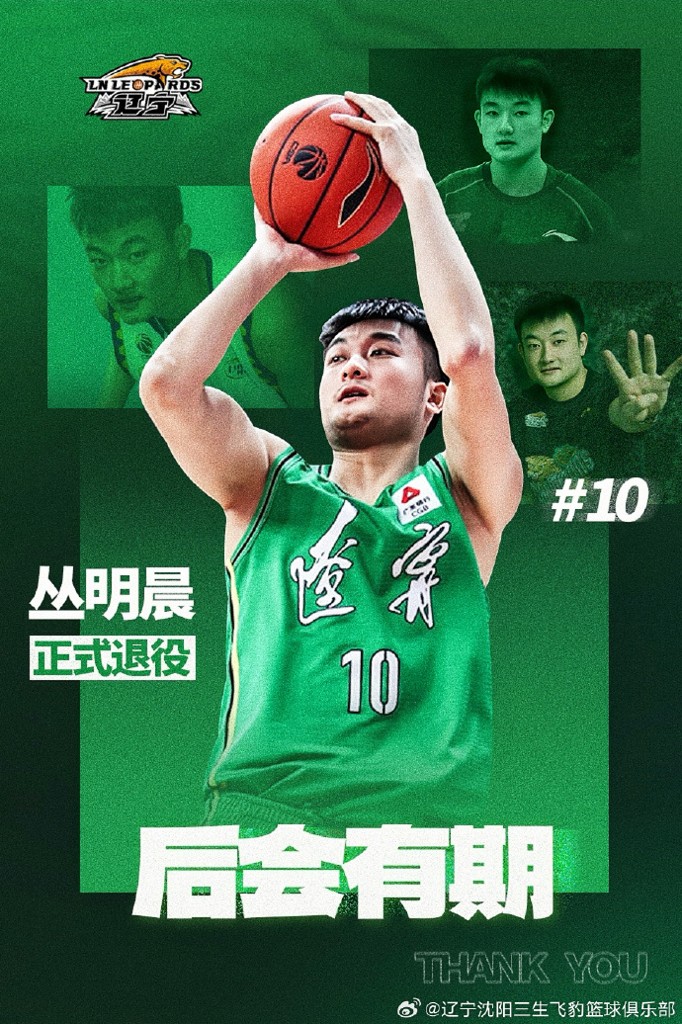 退役不是终点,而是另一段征程的起点。俱乐部将全力支持丛明晨的转型发展,期待他在新的人生舞台上继续传递辽篮精神。愿明晨未来之路平坦宽广,生活美满幸福,辽宁男篮永远是你的家!