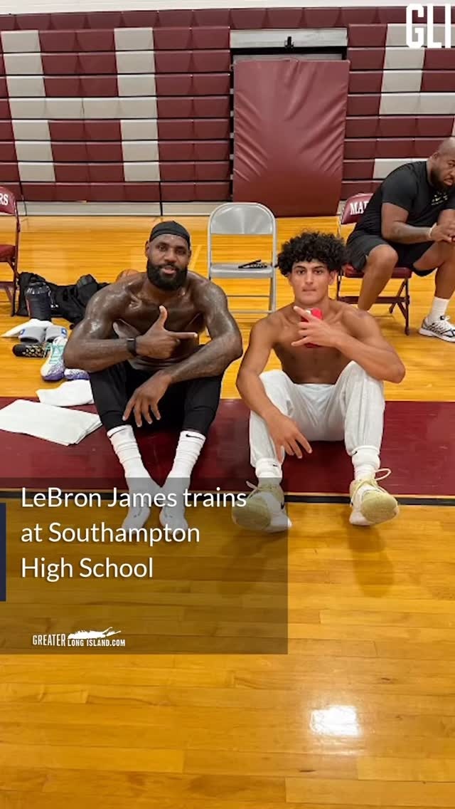 7月4日讯 今日,纽约长岛媒体报道了湖人前锋詹姆斯上周在当地一所高中的球员进行训练的动态。
