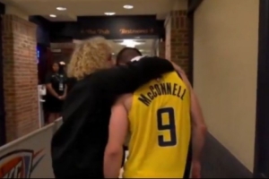 在视频中拥抱我的人其实是我们的球员人事副总裁凯伦-阿特克森。在我为步行者效力的六个赛季里,我和凯伦建立了很好的关系。她看到我泪流满面,情绪激动,便给了我一个大大的拥抱,并试图安慰我。当电视摄像机开始跟随我时,她出于对我的支持而本能地做出了反应。
