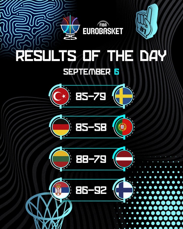 09月07日讯 男篮欧锦赛在当地时间9月6日结束了16进8的一半对决,其中,塞尔维亚被芬兰淘汰!土耳其则是强势挺进八强,详情如下: