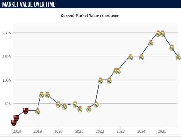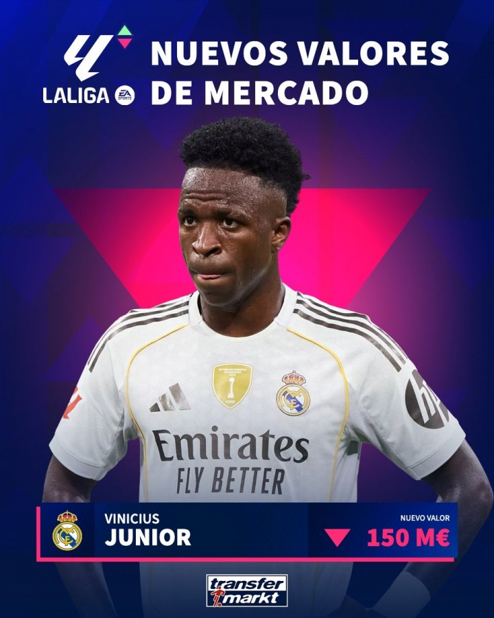 德转西班牙区管理员表示:“自一年前错失金球奖后,维尼修斯的地位有所下降,场上表现也未能达到预期。加之皇马换帅后阵容体系重组,这位边锋如今扮演的角色较以往更具辅助性。这些因素共同导致其价值下跌。”