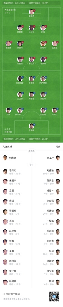 04月16日讯 北京时间19:00,中超第7轮,大连英博vs河南。赛前,双方公布首发名单。