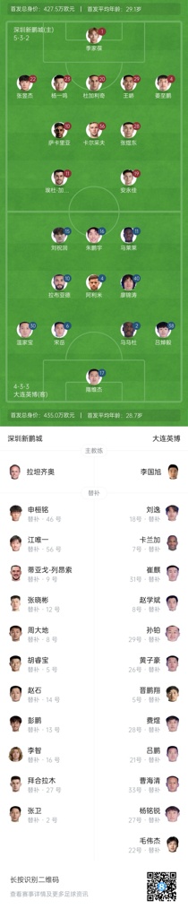 04月26日讯 今晚19点中超第9轮,深圳新鹏城vs大连英博。赛前首发阵容已经公布。
