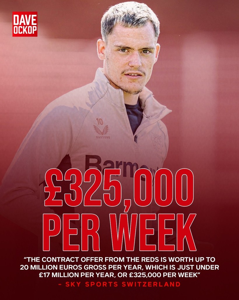 05月25日讯 据瑞士天空体育记者Sacha Tavolieri爆料,利物浦向维尔茨提供了一份年薪2000万欧元的长期合同。这一消息引发了英媒关注,如果属实,维尔茨将成为利物浦顶薪成员之一,薪水排名高居队内第三。