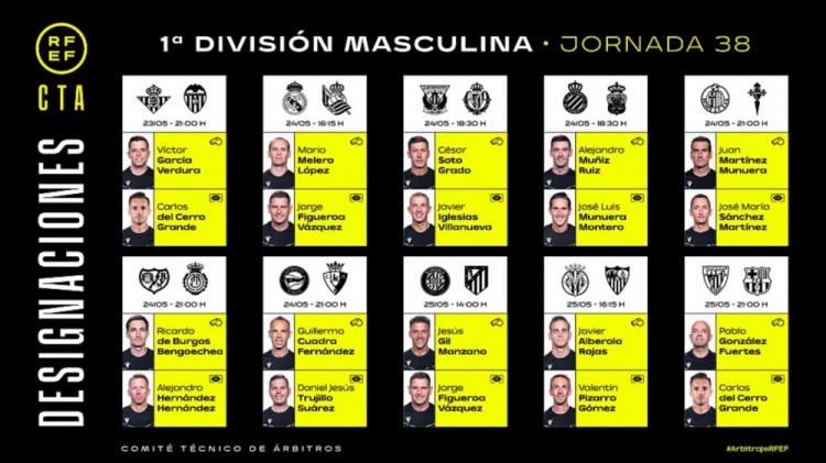 主裁判:穆努埃拉,VAR裁判:桑切斯-马丁内斯;