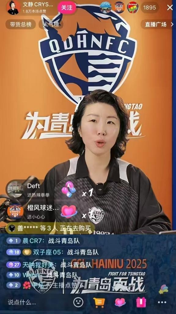 尽管目前直播卖货的收入有限,但冯文静表示,它在提升俱乐部广宣度,以及增强球迷黏性和互动深度方面作用显著。