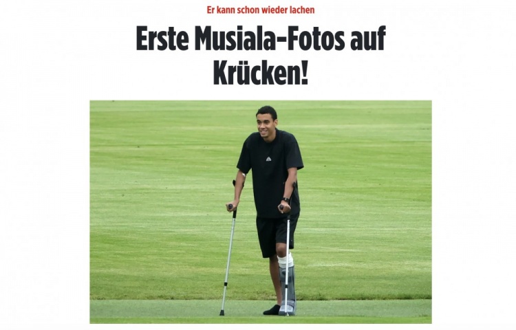 穆西亚拉的观战并未给拜仁世界队带来好运,他们以2-2与维也纳快速战平。在之后大约10分钟,穆西亚拉就拄着拐杖蹒跚地穿过主训练场回到职业球员大楼。