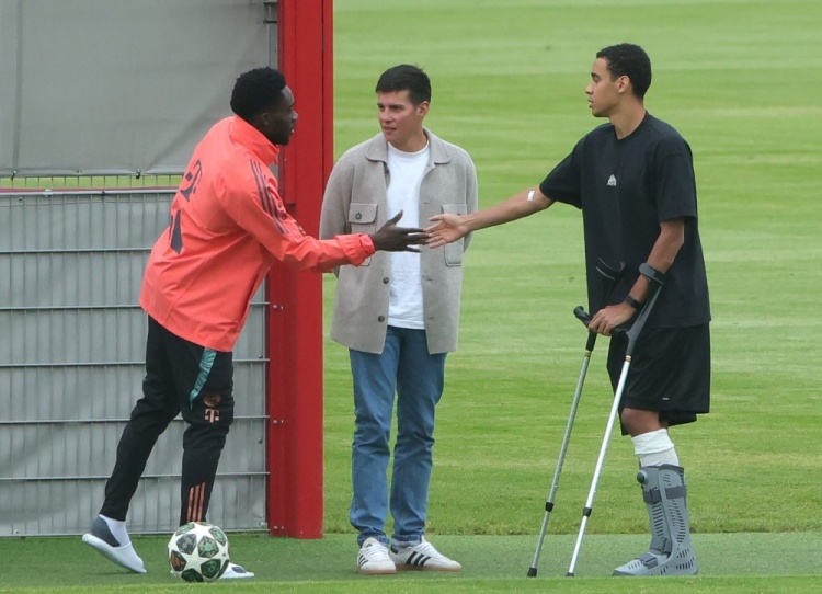 据悉穆西亚拉在12点20分一瘸一拐地走进场地,陪同他的是其好友阿方索-戴维斯(右膝前十字韧带撕裂)以及球员经理约翰内斯-莫斯曼。